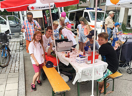 Karl-Heinz Demenat, Vorsitzender des Münchner Roten Kreuzes und Sabine Wagmüller, 1. stv. Vorsitzende, leisteten unterstützt von Corinna Mauermayer (BRK-Bereitschaft Deisenhofen) und Christian Reiter (Bergwacht München) am 1. Wiesnmontag Dienst am Infopoint der Wiesn-Sanitätsstation.