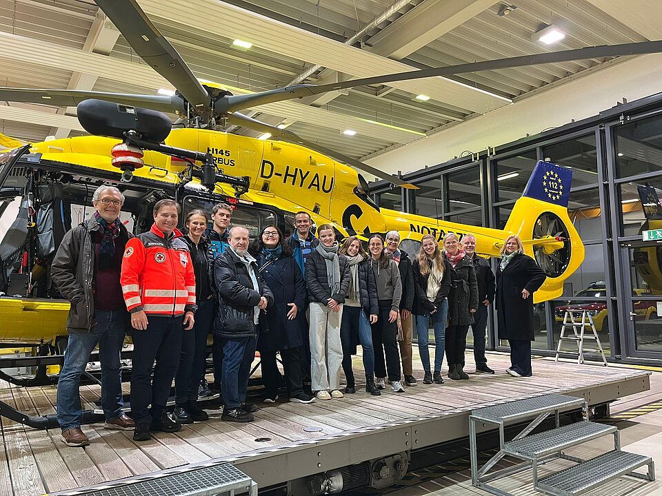 Die Gruppe hatte die Gelegenheit, aus erster Hand von der Besatzung die Arbeitsweise, Ausstattung und typische Einsätze der Luftrettung vorgestellt zu bekommen. Auch Tipps für die Zusammenarbeit im Einsatz hatten die Luftretter parat.
