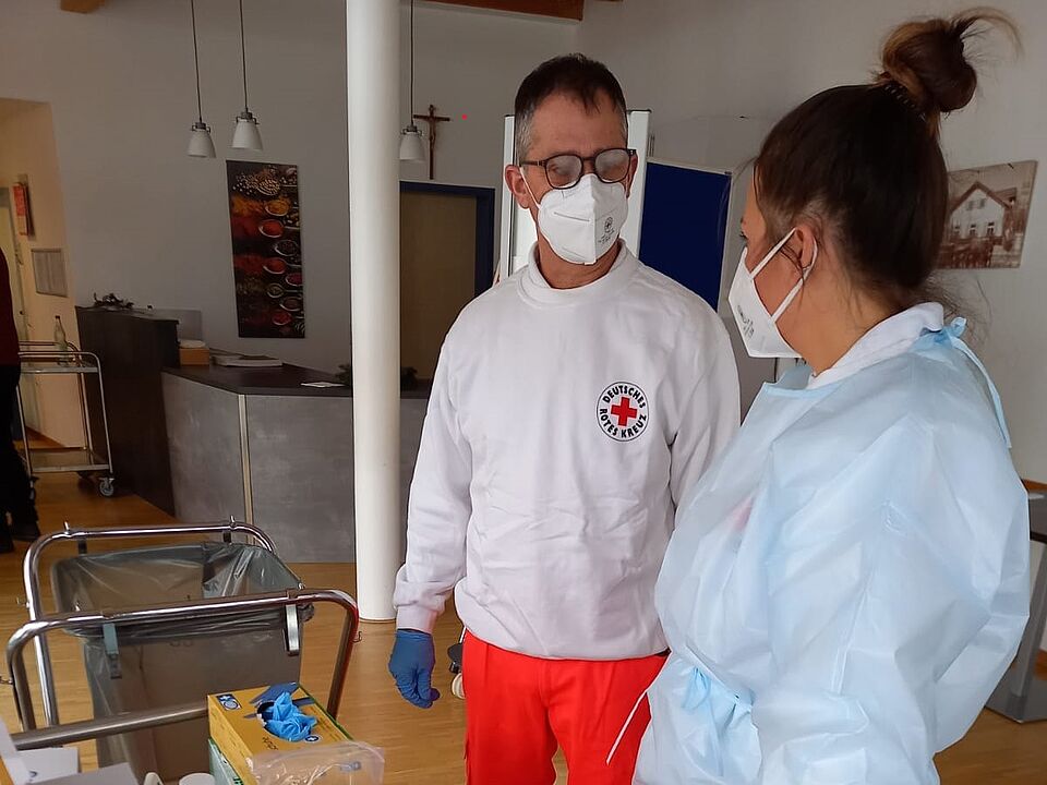 Am heiligen Abend sowie am ersten und zweiten Weihnachtsfeiertag unterstützten ehrenamtliche Helfer*innen des Deisenhofener Roten Kreuzes das Personal des Seniorenheims St. Rita und führten Corona-Schnelltests für Besucher*innen und Mitarbeiter*innen durch.