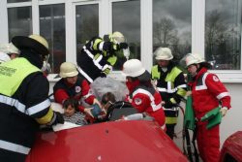 Das Jugendrotkreuz stellte die Mimen, die mit realistischen Verletzungen geschminkt waren. Im Mittelpunkt der Übung stand die Kommunikation zwischen Feuerwehr und Rotem Kreuz an der Einsatzstelle.