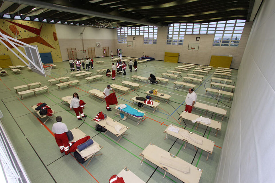 Im Rahmen des Betreuungsdienst- Kontingentes Oberbayern haben vom Samstag bis Sonntag rund 80 ehrenamtliche Helfer des Roten Kreuzes (25 davon aus München) den Ernstfall geprobt: Infolge starken Regens und Tauwetter in den alpinen Hochlagen ist es im Landkreis Garmisch-Partenkirchen zu einer allgemeinen Hochwasserlage gekommen, so die Annahme der Übung. Insbesondere im Loisachtal habe sich die Hochwasserlage im Ortsbereich Eschenlohe und Teilen von Oberau dramatisch zugespitzt, sodass ca. 500 Personen evakuiert werden mussten. Da die örtlichen Einsatzkräfte bereits in Einsätzen gebunden bzw. auf Grund der Hochwassersituation nur bedingt zur Verfügung stehen, musste Hilfe aus dem restlichen Oberbayern angefordert werden. Diese haben zwei Anlaufstellen zur Kanalisierung der Evakuierten gebildet und im Staffelsee- Gymnasium Murnau eine Unterkuft für die Evakuierten eingerichtet und die Nacht hindurch bis Sonntagvormittag betrieben. Neben Schlafmöglichkeiten wurde auch die Verpflegung und psychosoziale Betreuung der Betroffenen geübt.