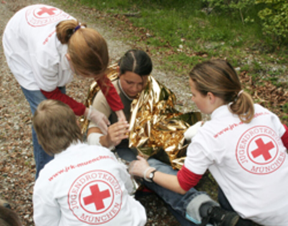 Sechs Jugendgruppen des Münchner Roten Kreuzes trafen sich heute am Walchensee, um sich in verschiedenen Disziplinen zu messen. Neben Allgemein- und Rotkreuzwissen waren auch sportliche Geschicklichkeit beim Eierlauf, Kreativität beim Basteln und Improvisationstheater und echter Teamgeist bei der praktischen Erste-Hilfe-Übung gefragt.