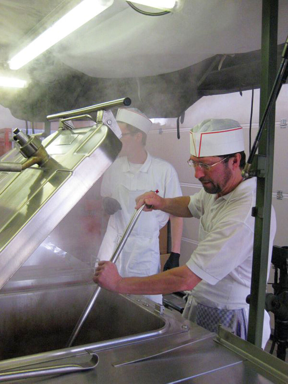 Damit die Tester nicht hungern müssen, versorgten rund 25 ehrenamtliche Rotkreuzler sie mit Frühstück, Getränken und warmem Mittagessen. Das Münchner Rote Kreuz war natürlich mit dabei und zauberte auf zwei Feldküchen Gulasch mit Reis und einen schmackhaften Eintopf. Auch zwei Ausgabestellen besetzten die 18 Münchner Rotkreuzler aus den Bereitschaften Deisenhofen, Süd 2 und Zentral 2. Bereits am Donnerstag waren einige von ihnen nach Garmisch gefahren, um im dortigen Kreisverbandsgebäude zwei Feldkochherde und im Skistadion ein Ausgabezelt aufzubauen. Nach der Essensausgabe am Samstag reinigten die Helfer ihr Material, putzten die Feldküchen und begaben sich schließlich gegen 16:30 Uhr auf den Heimweg nach München.