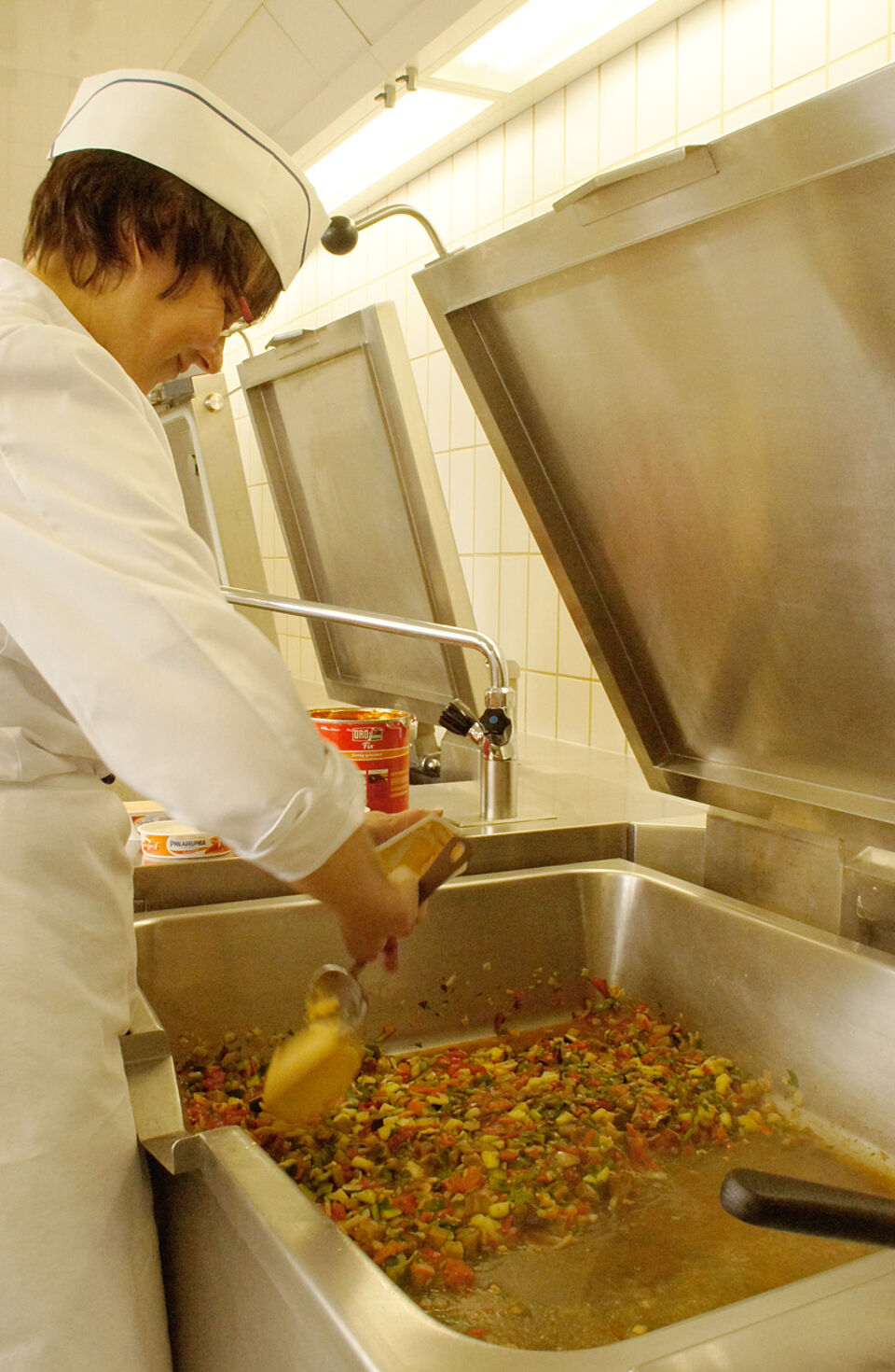 Für eine Übung der Rotkreuzkollegen von der Wasserwacht kochten die ehrenamtlichen Helfer des Betreuungsdienstes heute das Mittagessen. Nachdem ein Küchenteam der Bereitschaft Deisenhofen in der Küche der Kreisgeschäftsstelle 70 Portionen Putengeschnetzeltes und 30 Portionen Ratatouille mit Reis zubereitet hatte, brachten Helfer der Bereitschaft Süd 2 das Essen zur Feuerwache 2 und gaben es dort aus.