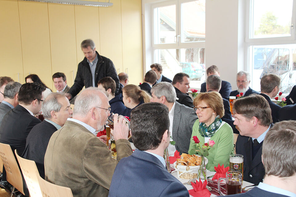 Für die geladenen Gäste, zu denen neben Gemeinderäten, Ortsvereinen, Spendern und hochrangigen Vertretern der Rotkreuzfamilie auch die Architektin gehörte, gab es nach den Grußworten ein Mittagessen vom Küchenteam des Deisenhofener Roten Kreuzes. Anschließend bot sich die Gelegenheit für die Besichtigung des Anbaus, der Fahrzeuge und des Rotkreuzhauses sowie für intensive Gespräche.