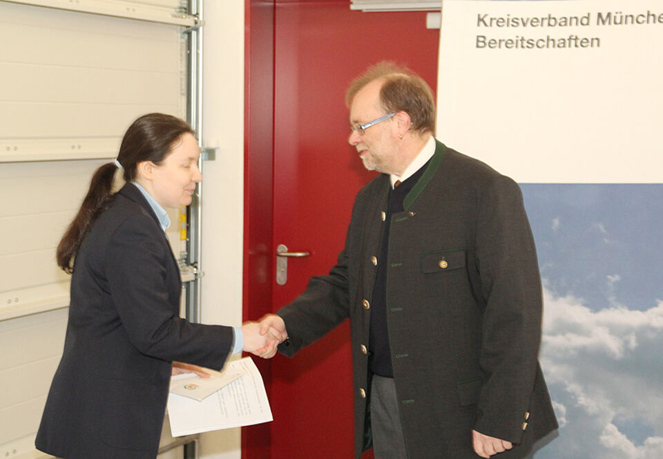 Ein Überraschungsgeschenk hatte Georg-Michael Kaiser dabei, Vorsitzender der Kolpingsfamilie Oberhaching-Deisenhofen. Er überreichte Tania Reisinger eine Spende von 500 Euro für die Rotkreuzarbeit in Oberhaching.