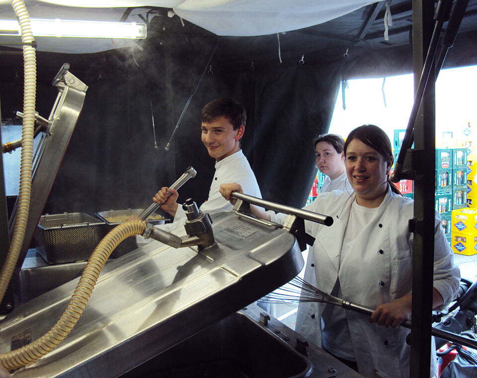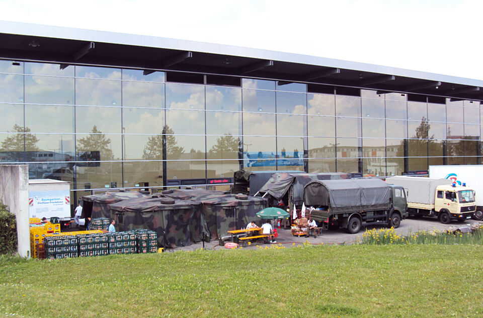 Bereits am 6. Juni folgte der nächste Alarm, diesmal nach Passau. Dort verpflegten die Helfer bis zum 9. Juni gemeinsam mit der Bundeswehr und zahlreichen freiwilligen Helfern Tausende Einsatzkräfte an der Dreiländerhalle.