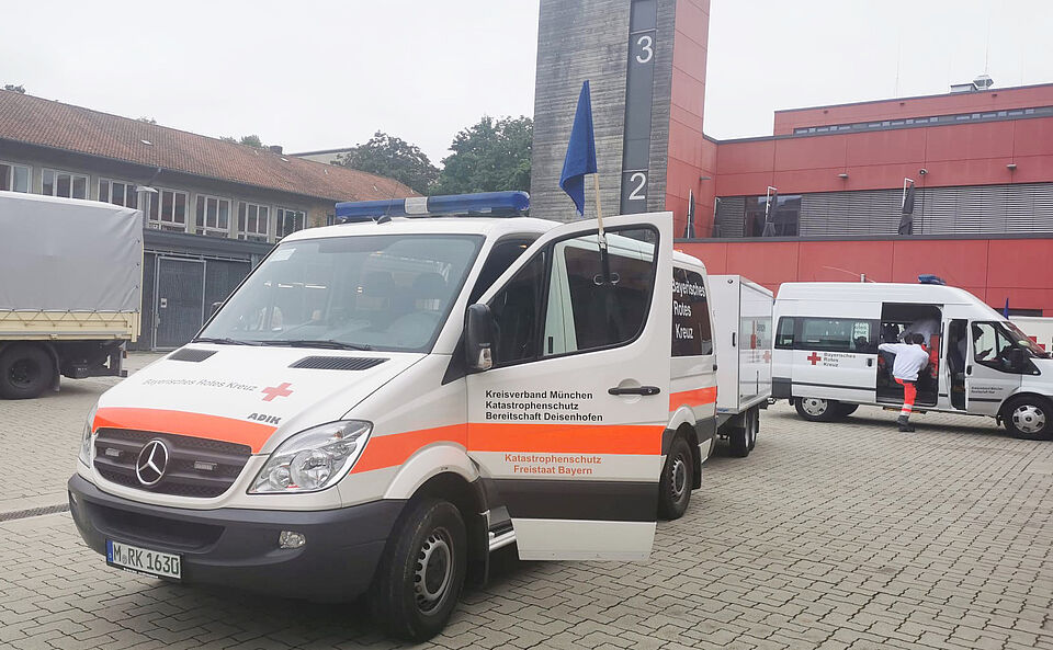 Auch wenn Stadt und Landkreis München vom Hochwasser weitgehend verschont wurden, sind ehrenamtliche Helfer*innen des Münchner Roten Kreuzes mit verschiedenen Einsatzeinheiten überregional im Einsatz, um den Betroffenen beizustehen.