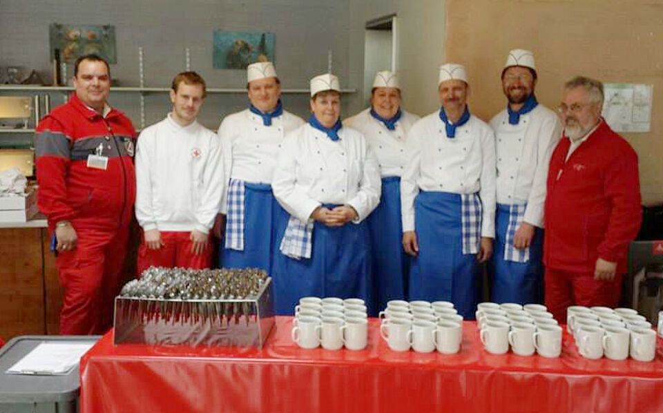 "Wir freuen uns, dass wir die Kollegen von der Wasserwacht unterstützen konnten", sagt Hajo Gemach, der den Verpflegungseinsatz am Samstag verantwortete. "Für die Küchenteams war es allerdings ein langer Tag, weil nach der Verpflegungsausgabe noch das gesamte Geschirr gespült werden musste."