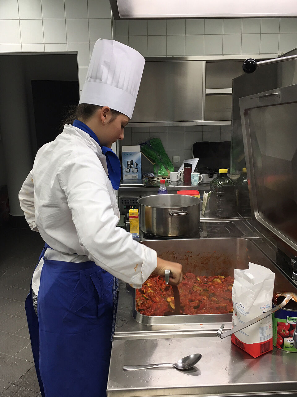 "Dort gibt es wie bisher auch eine professionelle Küche", freut sich Thomas Wagmüller, stellvertretender Leiter des Deisenhofener Roten Kreuzes. "Allerdings ist die Küche deutlich kleiner als bisher und auch mit weniger Geräten ausgestattet. Deshalb kamen wir bei diesem Einsatz schon leicht über die Kapazitätsgrenze." Um dennoch rechtzeitig fertig zu werden, hatten sechs Helfer*innen bereits am Freitag nach dem Einkaufen die ersten Vorbereitungsarbeiten gemacht, damit am Samstag schließlich drei Helfer*innen das Mittagessen zubereiten konnten. In Großhadern gaben dann Kolleg*innen der anderen Betreuungseinheiten das Essen aus.
