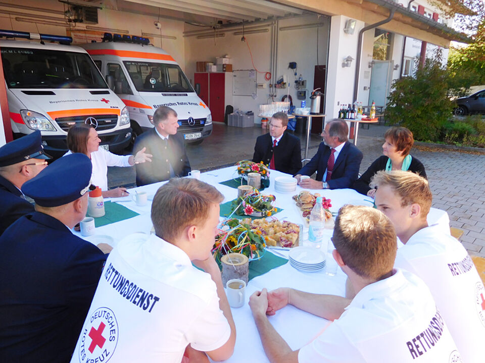"Ich freue mich, dass wir hier in Oberhaching die größtmögliche Synergie aus beruflichen und ehrenamtlichen Aufgabenfeldern des Roten Kreuzes schöpfen können und dass davon die Hilfsbedürftigen maximal profitieren", sagte Sabine Wagmüller, stellvertretende Vorsitzende des Münchner Roten Kreuzes. "Der Rettungszweckverband gibt und hoffentlich langfristig die Möglichkeit, zu zeigen, dass das funktioniert." Thomas Wagmüller, stellvertretender Leiter des Deisenhofener Roten Kreuzes, ergänzte: "Wir freuen uns auf eine bewusst enge Kooperation mit den beruflichen Kollegen. Ich wünsche mir auch, dass die Rettungswache attraktiv für Praktika unserer ehrenamtlichen Helfer ist, weil man sich persönlich kennt."