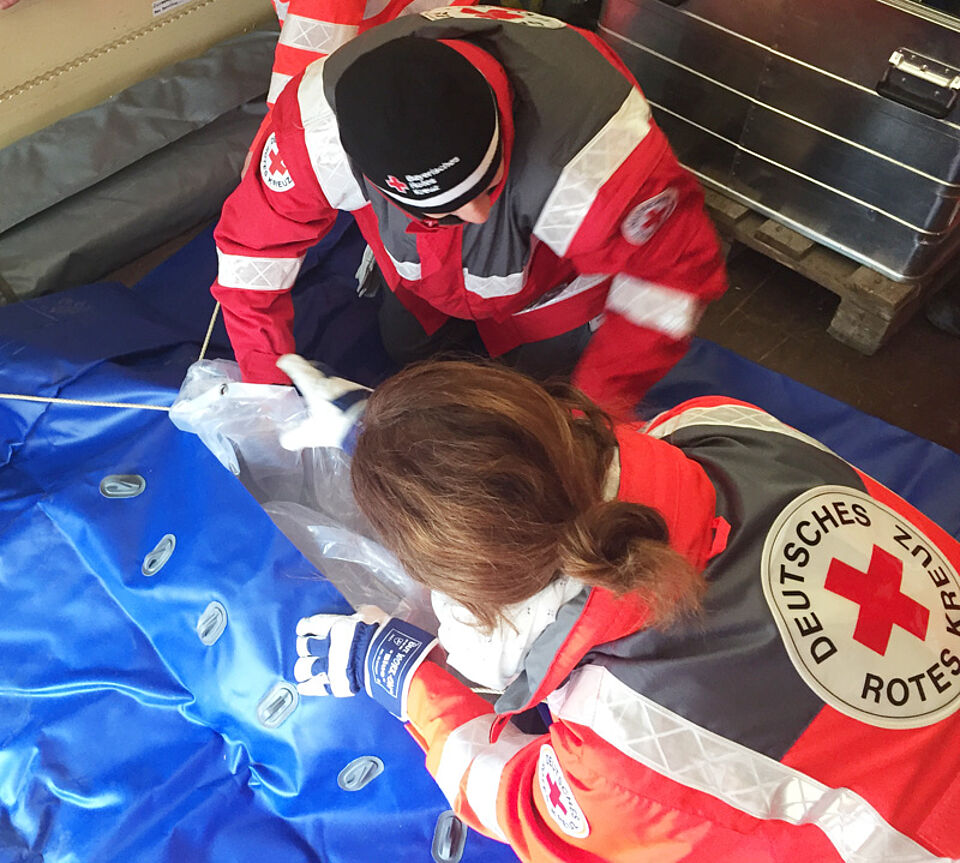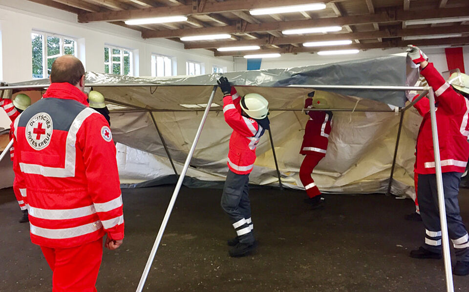 Inhaltlich beschäftigten sich die Teilnehmer*innen mit Taktik im Betreuungseinsatz, der Zusammenarbeit mit anderen Fachdiensten, Hygienemaßnahmen, Grundsätzen der Verpflegung, Registrierung und Suchdienst, sozialer Kompetenz, dem Betrieb von Notunterkünften und Besonderheiten in der Kommunikation mit Betroffenen. Auch praktisch legten sie Hand an: Auf dem Programm stand neben dem Kennenlernen der Fahrzeuge auch der Aufbau der Feldküche und des Küchenzeltes, die Handhabung des Trinkwassersatzes und eine praktische Übung zur Einrichtung einer Notunterkunft.