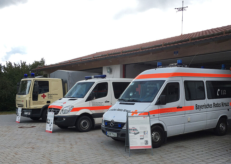 Die ehrenamtlichen Rotkreuzler*innen beteiligten sich mit einem Infostand und ließen die Besucher*innen den ganzen Tag über die Wiederbelebung an einer Puppe üben. Das Jugendrotkreuz war nebenan im Dauereinsatz, um den Kindern möglichst dramatische Wunden zu schminken. Die Feuerwehr bot ein buntes Programm von Fahrzeugschau über Feuerlöschertraining und Brandsimulationen bis hin zu Livemusik und Grillfleisch.